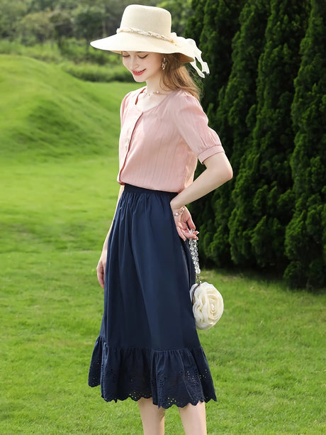 Normaler Preis €89,95 EURGrundpreis /Nicht verfügbarBlauer A-Linien-Sommerrock aus Baumwo...