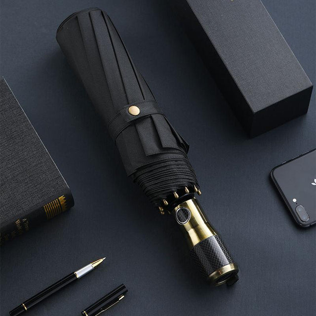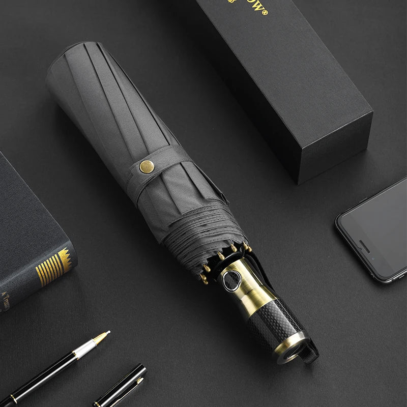 Erleben Sie die perfekte Kombination aus Haltbarkeit, Stil und Funktionalität mit diesem großen automatischen winddichten Regenschirm. Dieser für den modernen Gentleman entworfene Regenschirm sorgt dafür, dass Sie bei jedem Wetter vor den Elementen geschützt sind. Egal, ob Sie ins Büro, auf Reisen oder auf den Golfplatz gehen, dieser Regenschirm bietet umfassenden Schutz und unübertroffene Zuverlässigkeit. Mit einem luxuriösen Griff aus Kohlefaser und einem automatischen Faltdesign ist dieser Regenschirm ebenso praktisch wie raffiniert.