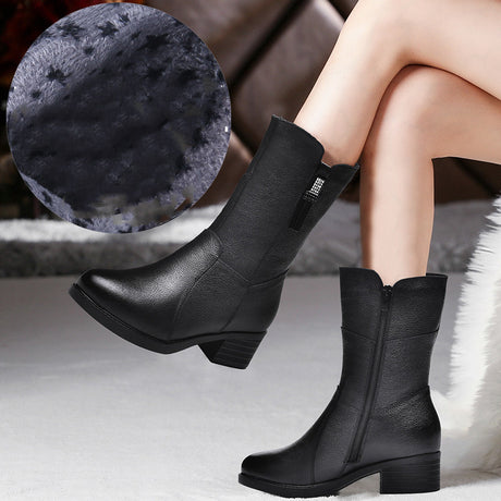 Normaler Preis €82,95 EURGrundpreis /Nicht verfügbarMittelhohe Damen-Lederstiefel mit hoh...