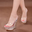 Transparente Damenschuhe mit Kristallkeilabsatz und wasserdichter Plattform – 15 cm