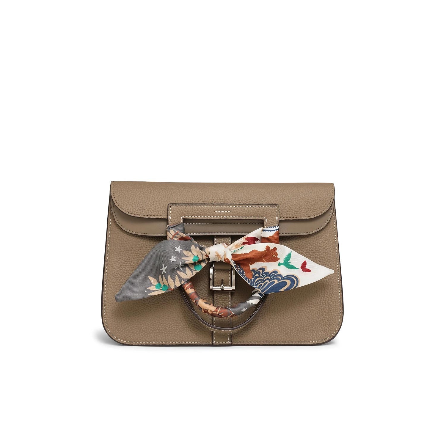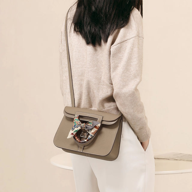Elegante Umhängetasche aus Rindsleder für Damen mit Schleife, Schal und verstellbarem Riemen