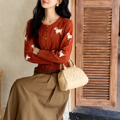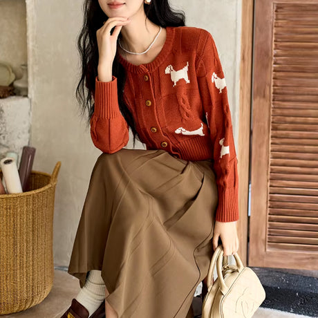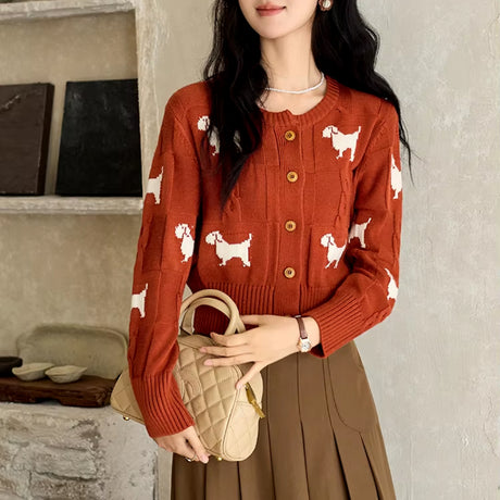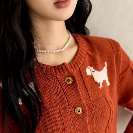 Normaler Preis HK$245.00Grundpreis /Nicht verfügbarLässiger Strick-Cardigan mit Hundemuster