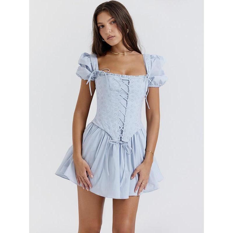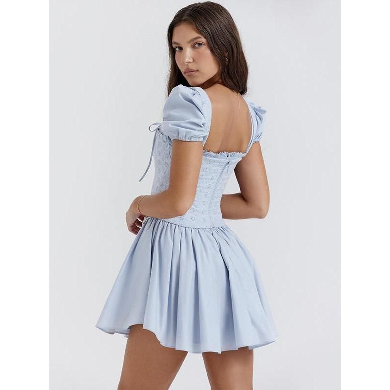 Elegantes Minikleid mit Puffärmeln und eckigem Kragen