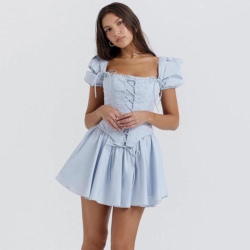 Betreten Sie eine Welt voller schicker Eleganz mit unserem eleganten Minikleid mit Puffärmeln und quadratischem Kragen. Dieses Kleid wurde für die moderne Frau entworfen, die eine Mischung aus klassischem Charme und zeitgenössischem Flair liebt, und ist ein Beweis für tadellosen Stil und exquisite Handwerkskunst. Egal, ob Sie eine Clubparty oder ein besonderes Ereignis besuchen oder Ihrer Garderobe einfach einen Hauch von Eleganz verleihen möchten, dieses Kleid ist ein absolutes Must-have.