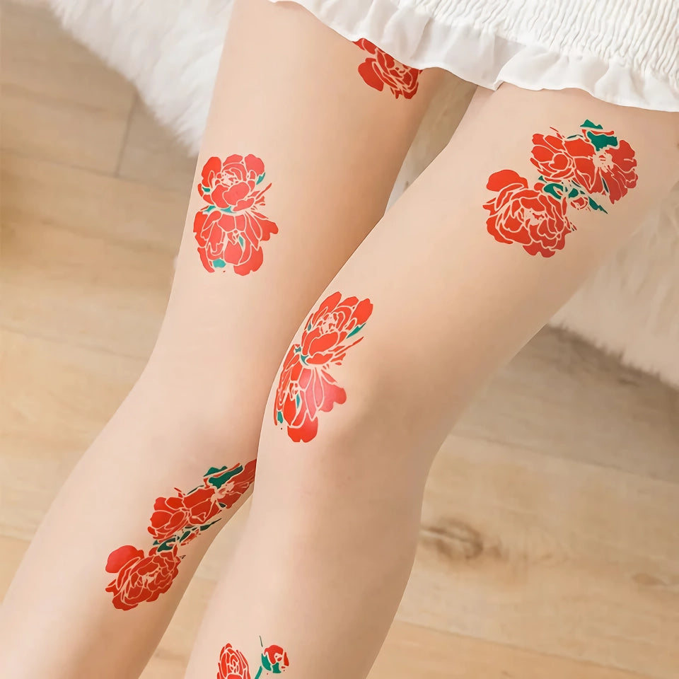 Umarmen Sie Eleganz mit floralen, roten, durchsichtigen Strumpfhosen mit Rosen