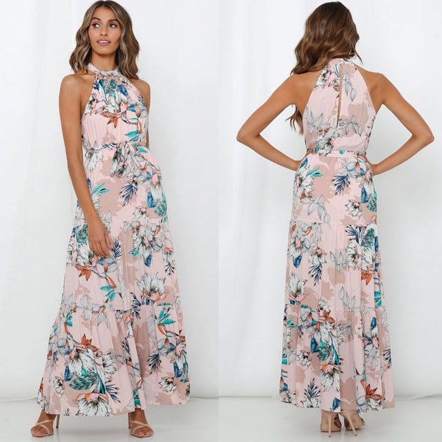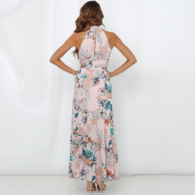 Neues, schmal geschnittenes Neckholder-Kleid aus Viskose mit Print und großem Swing-Schnürung für Damen