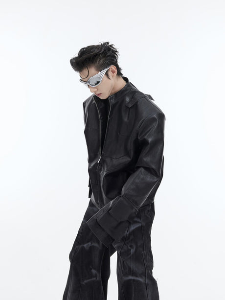Normaler Preis €284,95 EURGrundpreis /Nicht verfügbarRundhals Lederjacke Textur Kurze Moto...