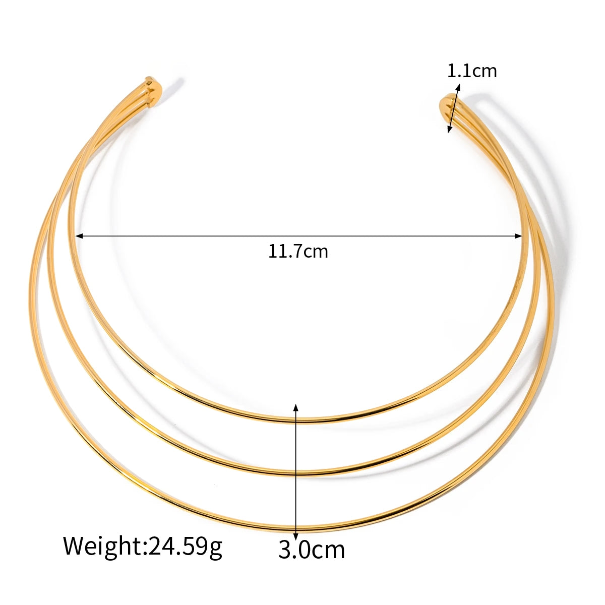 Gönnen Sie sich zeitlose Eleganz mit unserer dreireihigen Halskette aus 18 Karat vergoldetem Edelstahl, einem wahren Symbol exquisiter Handwerkskunst und beständigem Charme. Diese mit viel Liebe zum Detail gefertigte Halskette strahlt eine Mischung aus Schlichtheit und Eleganz aus und ist damit ein unverzichtbares Accessoire für jeden Anlass. Unser Schmuck ist aus hochwertigem Edelstahl gefertigt, was Haltbarkeit und Langlebigkeit gewährleistet. Die 18-Karat-PVD-Vergoldung verleiht einen Hauch von Luxus und garantiert gleichzeitig eine langanhaltende Farbe, die nicht so leicht verblasst, sodass Ihre Halskette jahrelang strahlend aussieht. Außerdem ist das Edelstahlmaterial kratzfest, sodass Sie es jeden Tag selbstbewusst tragen können.Hauptmerkmale: