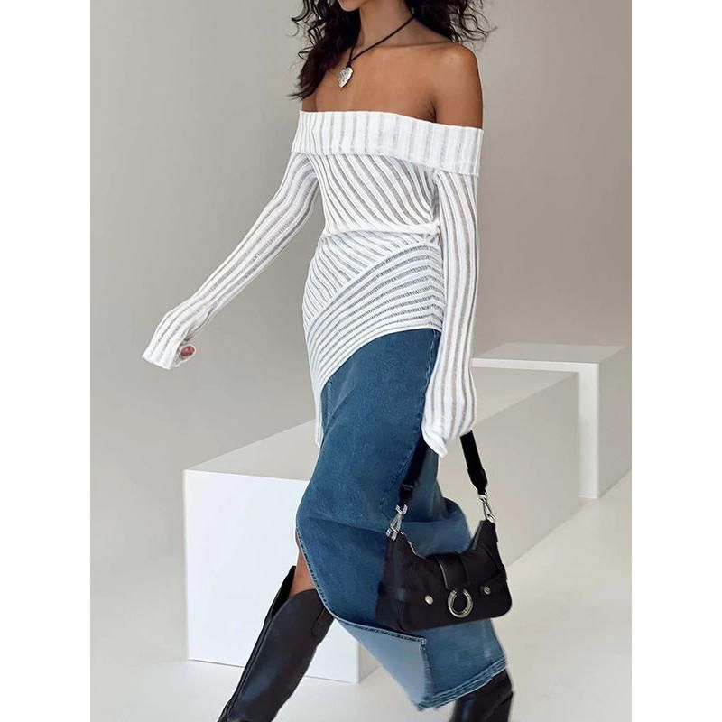 Betreten Sie die Welt des klassischen Stils gepaart mit einem modernen Touch mit unserem eleganten schulterfreien, rückenfreien weißen T-Shirt. Dieses Stück ist nicht nur ein Kleidungsstück; es ist ein Statement von Raffinesse und Anziehungskraft. Perfekt für die modebewusste Frau, die Komfort mit Stil verbindet, ist dieses Oberteil ein Muss in Ihrer Garderobe.