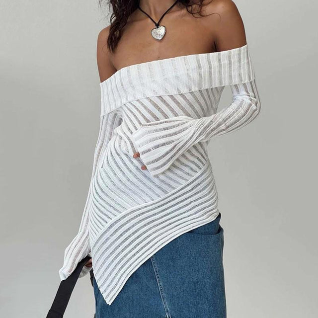 Betonen Sie Ihre Eleganz und verleihen Sie Ihrer Garderobe einen Hauch von Charme. Bestellen Sie jetzt und erleben Sie die perfekte Mischung aus Stil, Komfort und Qualität. Erhöhen Sie Ihr Modebewusstsein mit unserem eleganten schulterfreien, rückenfreien weißen T-Shirt.