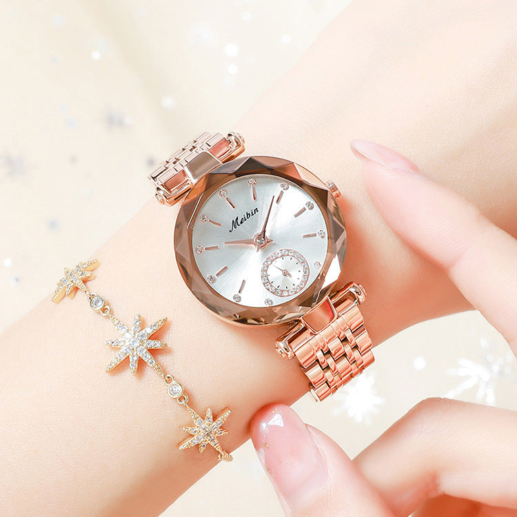 Damen-Quarz-Armbanduhr mit Kristall-Damenuhr