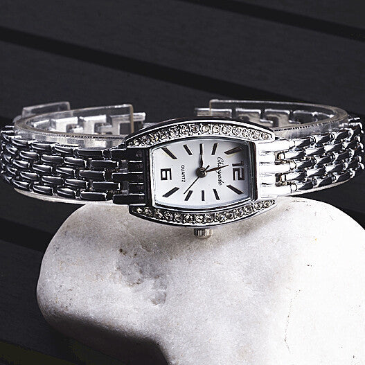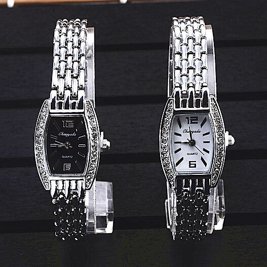 Damen-Armbanduhr mit quadratischem Zifferblatt und Diamanten
