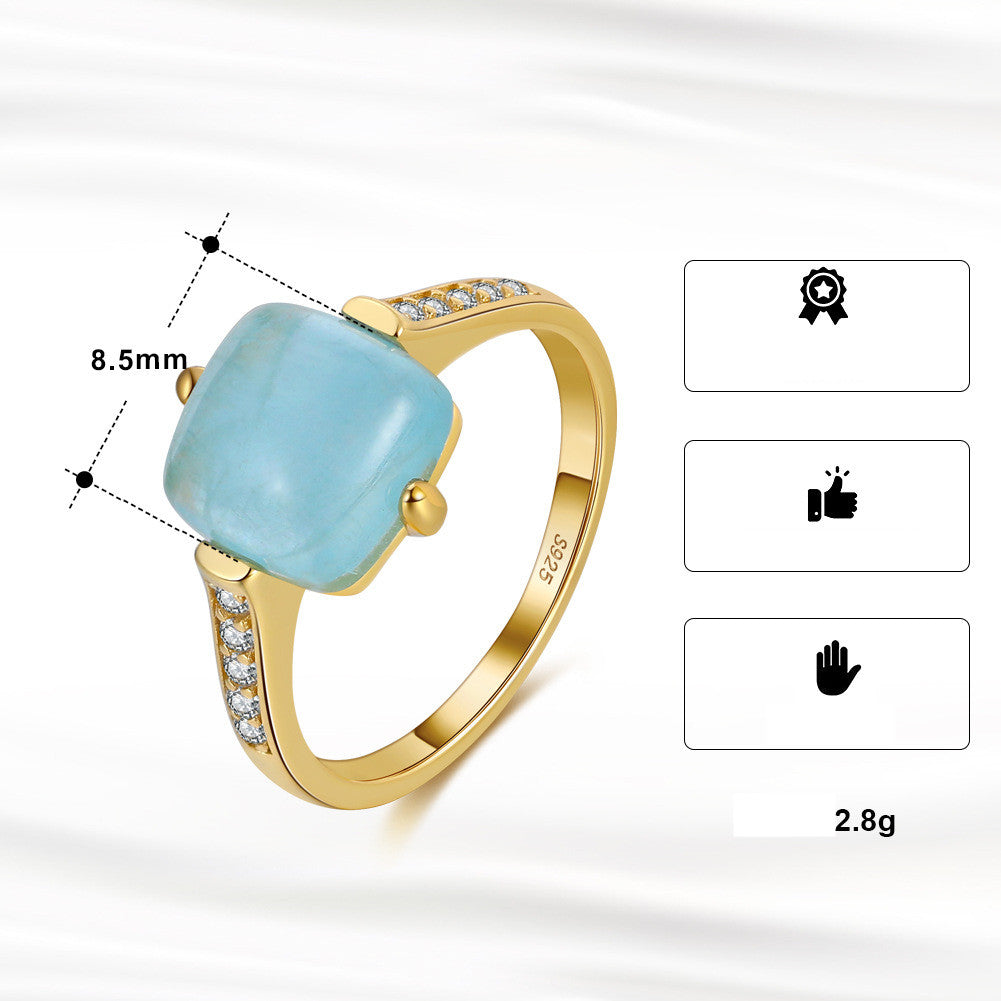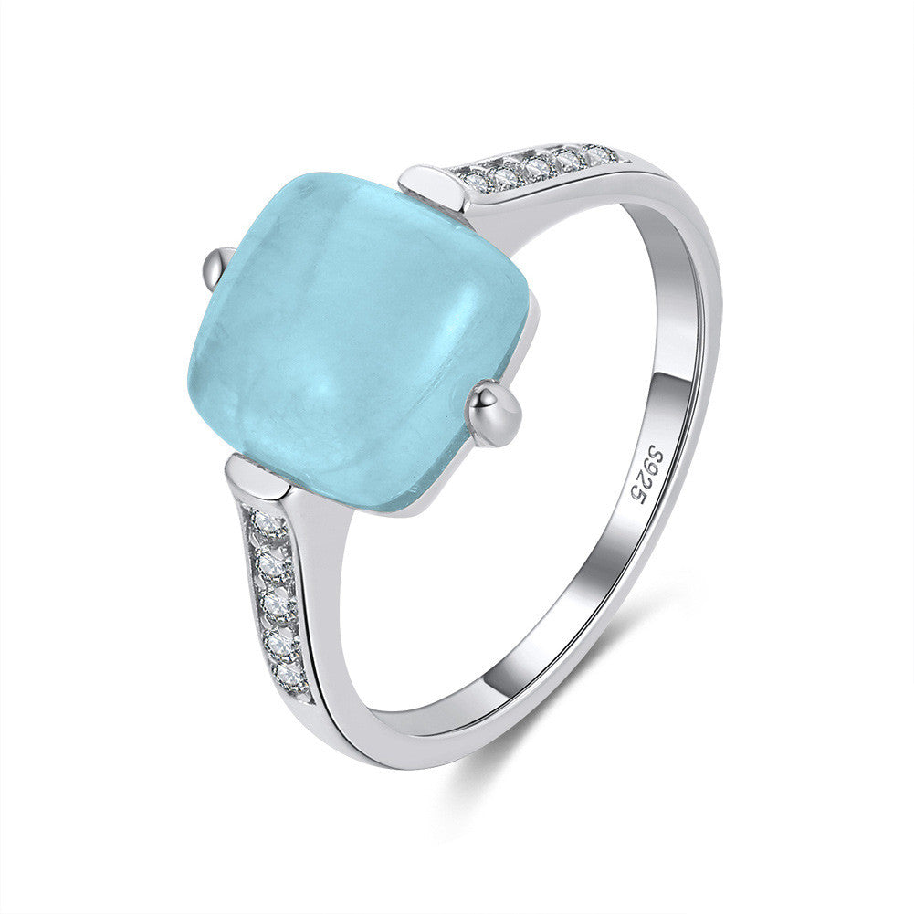 Ring aus S925-Sterlingsilber mit natürlichem Aquamarin und Vier-Klauen-Inlay