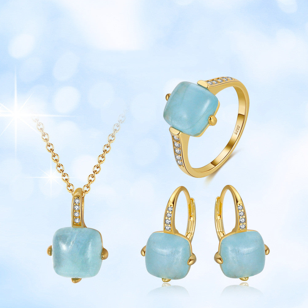 Farbe: 14K natürlicher Aquamarin-Babystein 9x9mm, Platin-natürlicher Aquamarin-Babystein 9x9mm