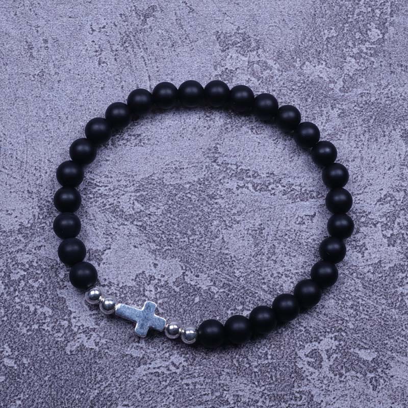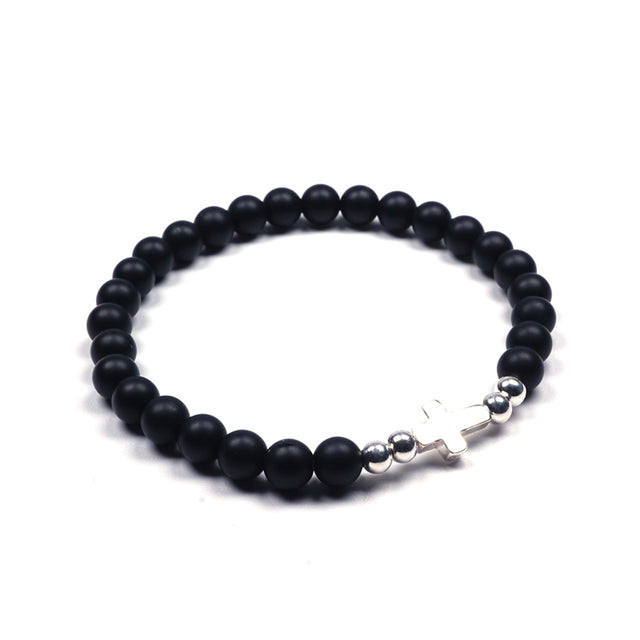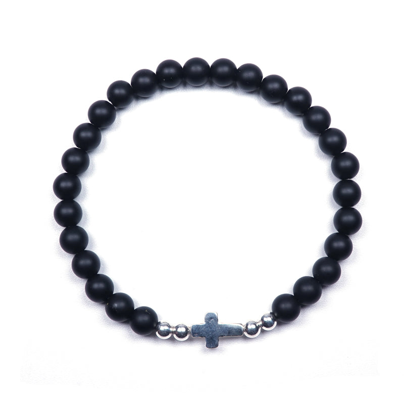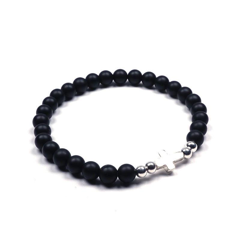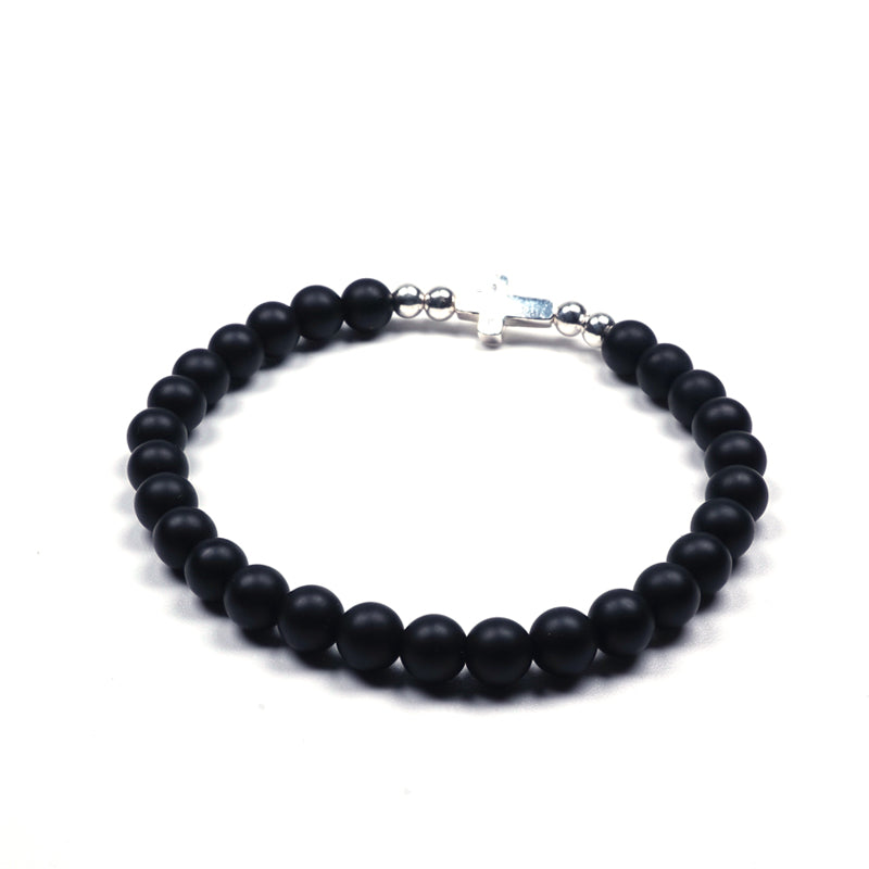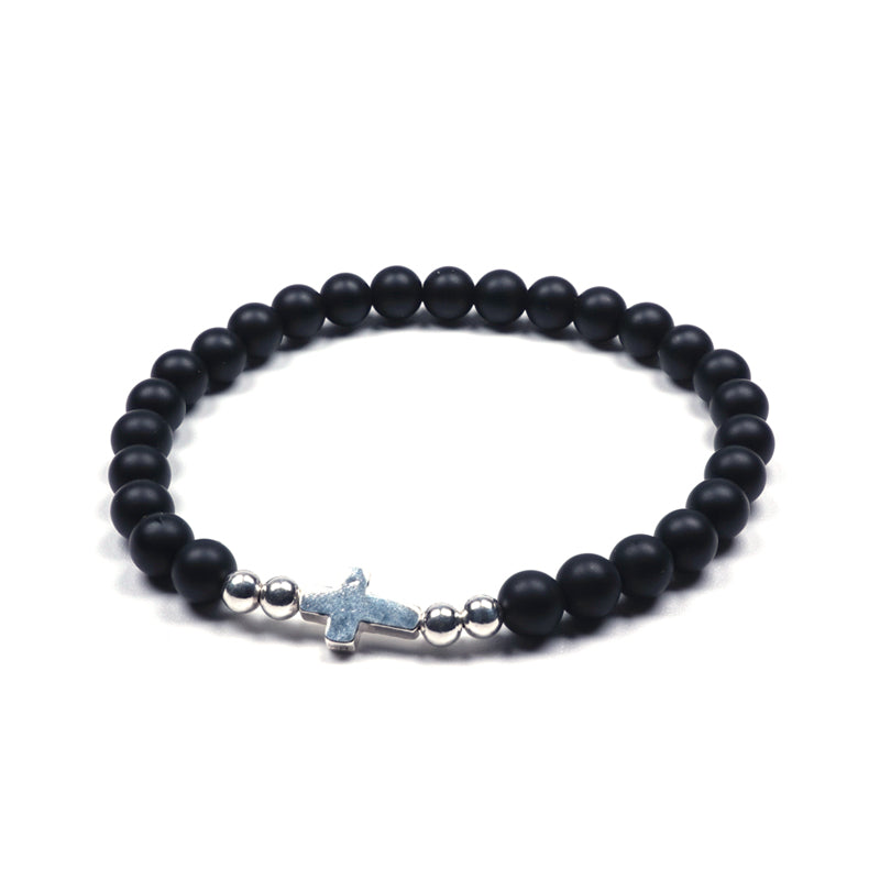 Vielseitiges minimalistisches Kreuz-Armband aus 925er-Sterlingsilber mit natürlichem mattiertem Achat