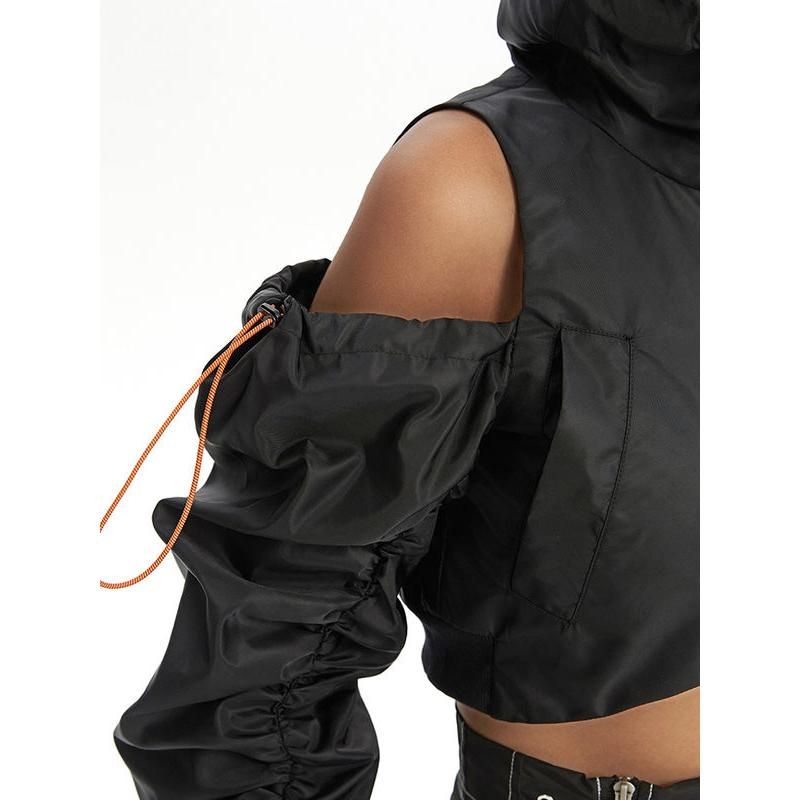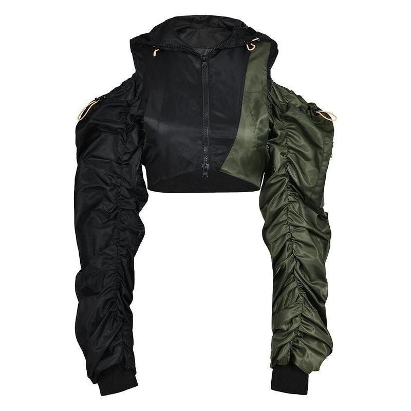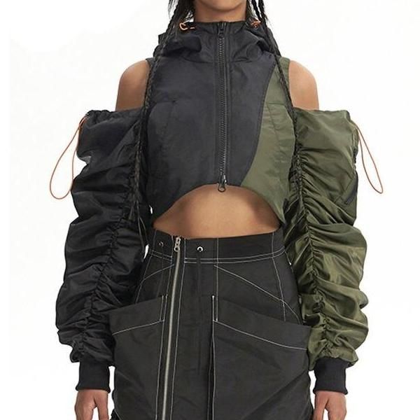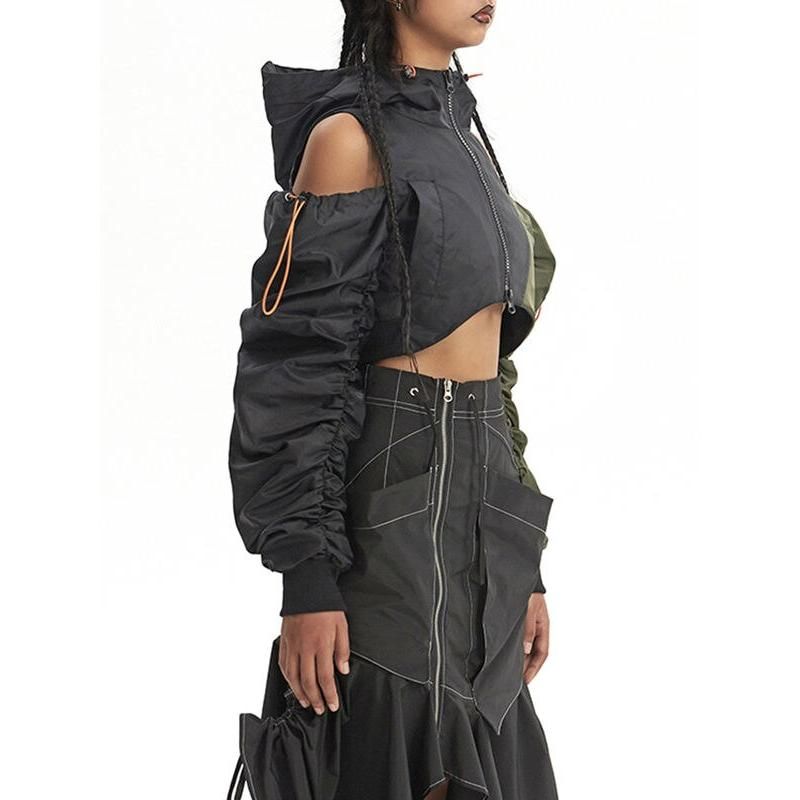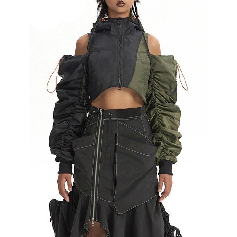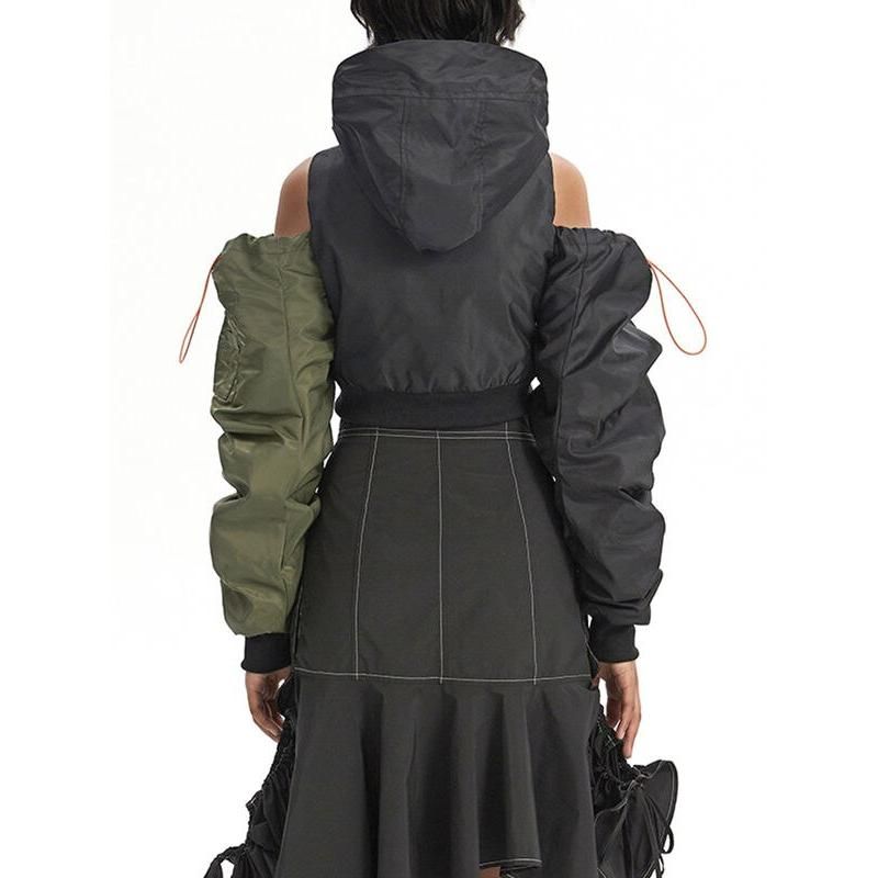 • Einzigartiges asymmetrisches Design: Diese Jacke bietet eine schulterfreie Silhouette mit Kapuze und ist eine Mischung aus auffällig und lässig.