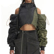 Betreten Sie die Welt der High Street Fashion mit dem Star unserer neuesten Kollektion – der asymmetrischen Patchwork-Jacke mit Kapuze für Damen. Diese atemberaubende, bauchfreie Jacke ist nicht nur ein Kleidungsstück; sie ist ein Statement für Stil und Selbstbewusstsein. Sie wurde für modebewusste Frauen entworfen und ist perfekt für alle, die es wagen, aufzufallen. Egal, ob Sie an einem lauen Abend ausgehen oder Ihrem Tagesoutfit das gewisse Etwas verleihen, diese Jacke ist für jeden Anlass die richtige Wahl.