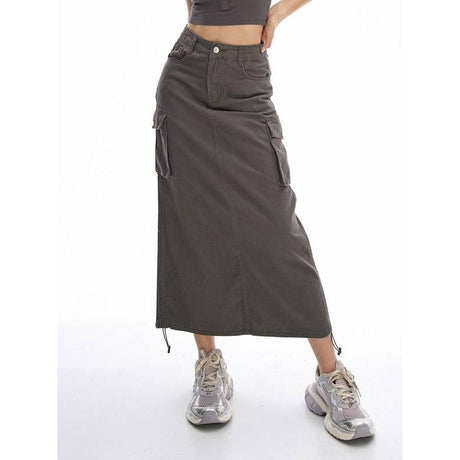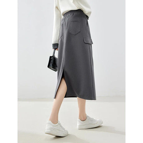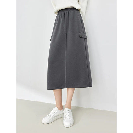 Normaler Preis ¥9,800 JPYGrundpreis /Nicht verfügbarEleganter dunkelgrauer mittellanger Rock