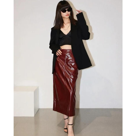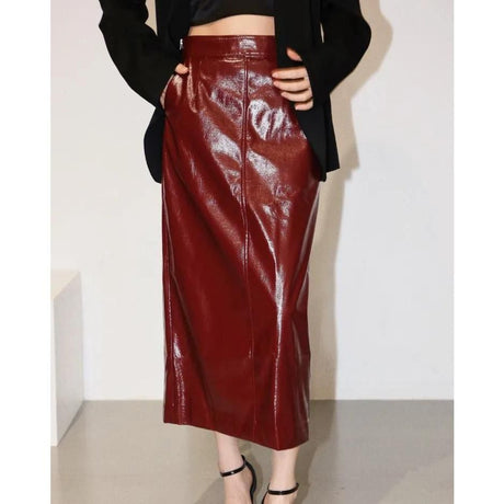 Normaler Preis ¥21,100 JPYGrundpreis /Nicht verfügbarEleganter gerader Rock aus Kunstleder...