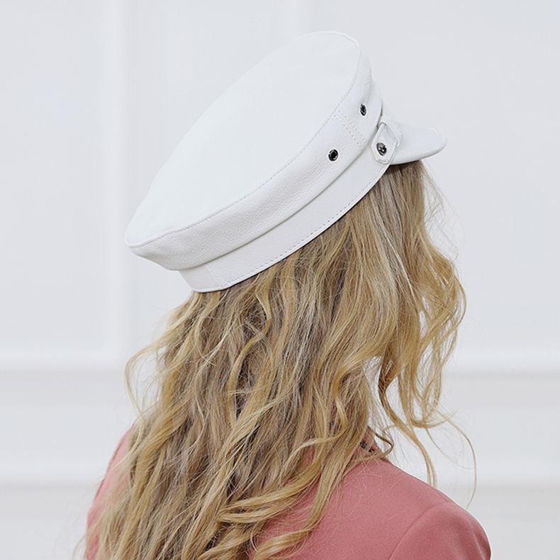 Tauchen Sie ein in eine Mischung aus zeitloser Eleganz und zeitgenössischer Mode mit dieser marineblauen Militärmütze aus echtem Leder für Unisex. Diese eng anliegende weiße Kappe aus hochwertigem Schaffell verkörpert die perfekte Fusion europäischer und amerikanischer Streetwear-Stile und ist ein schickes und doch vielseitiges Accessoire für Ihre Garderobe. Egal, ob Sie einen gemütlichen Spaziergang machen oder bei einem gesellschaftlichen Ereignis ein starkes Statement abgeben, diese Mütze ist Ihr Lieblingsstück in Sachen Komfort und Stil.