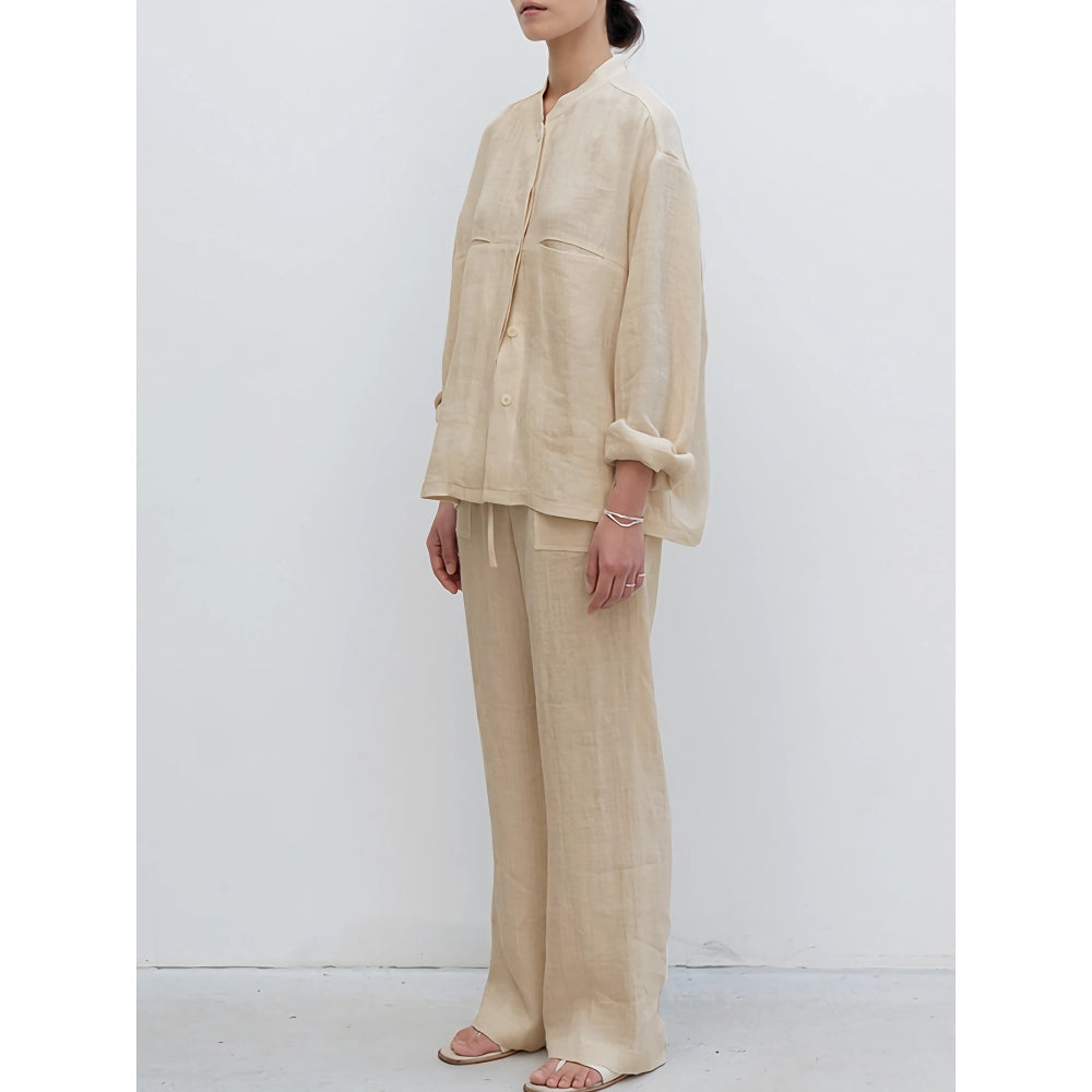 Lässige Langarmbluse aus Leinen mit Knopfleiste