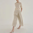 Elegante High Waist Hose aus Baumwoll-Leinen mit weitem Bein für Damen