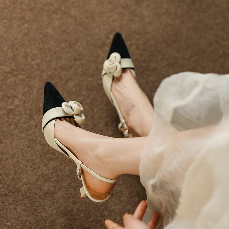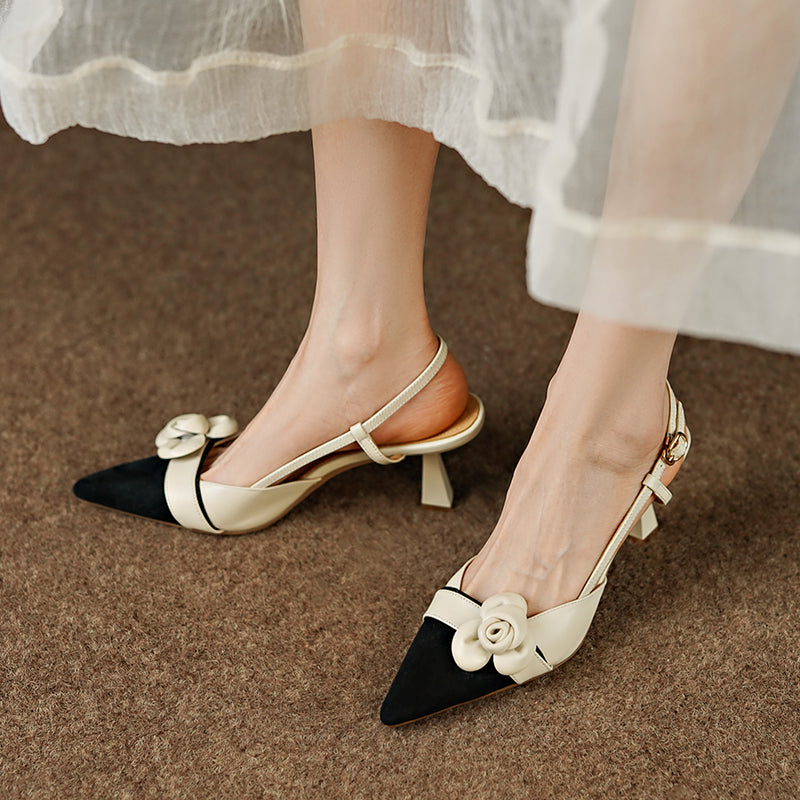 Schicke Sandalen mit spitzer Spitze und Blumenmuster
