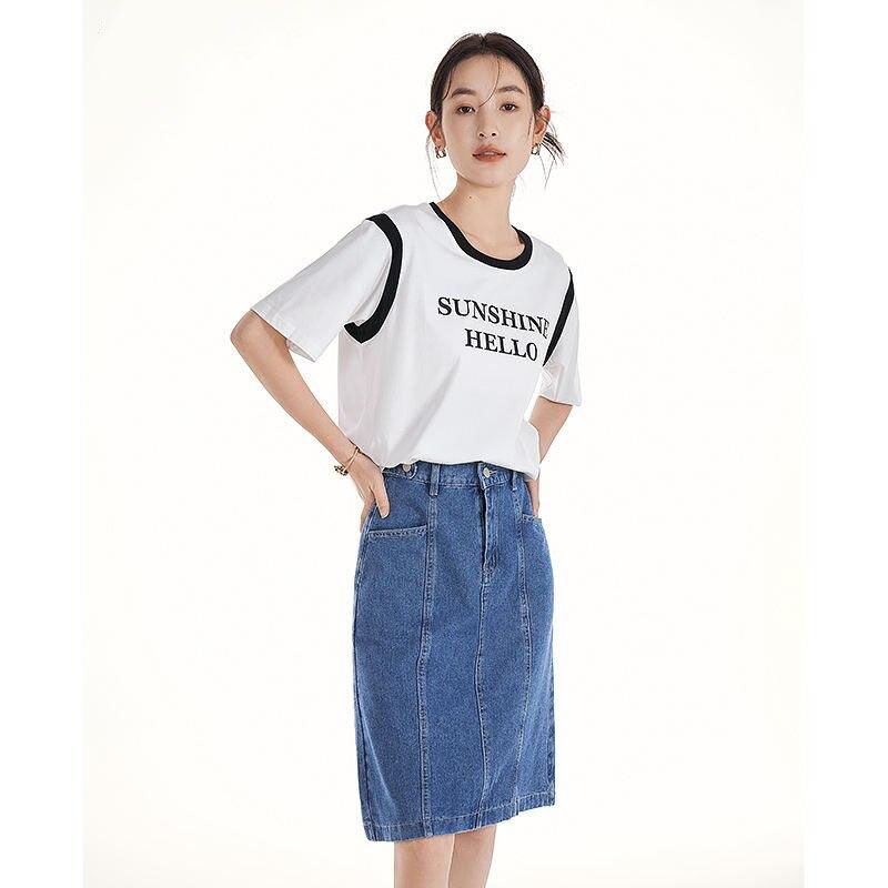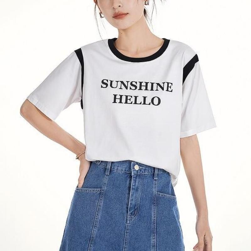 Lässiges Kurzarm-T-Shirt mit Rundhalsausschnitt für den Sommer, coolem Stoff und Buchstabendruck