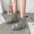 Modische Schnürstiefel mit quadratischer Zehenpartie und mittlerem Absatz - Grau / 35 ist auf Lager und wird versandt, sobald es wieder verfügbar ist