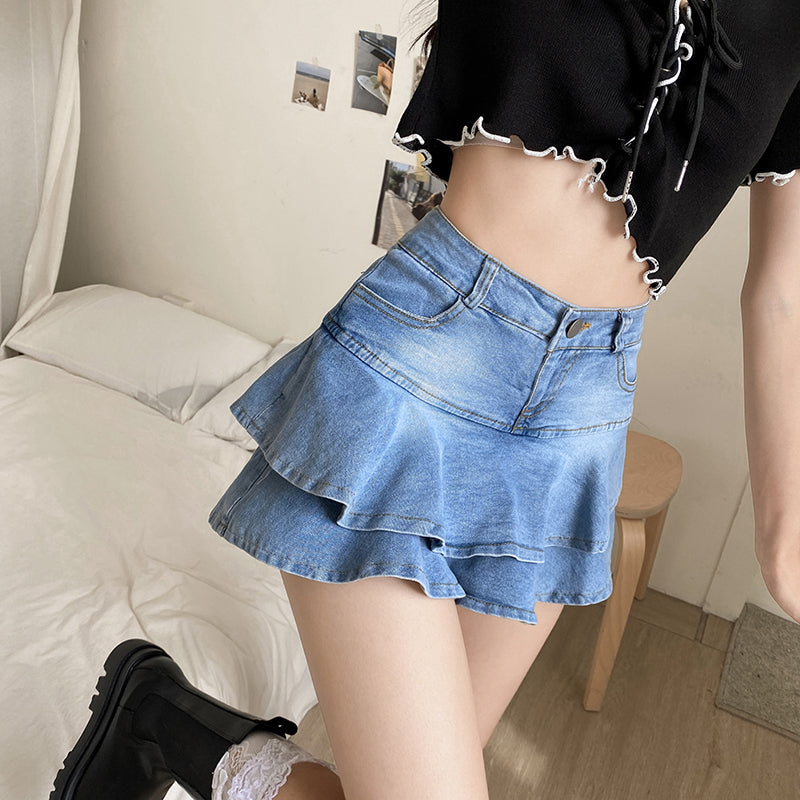Trendy Lagen-Jeans-Minirock mit Tasche