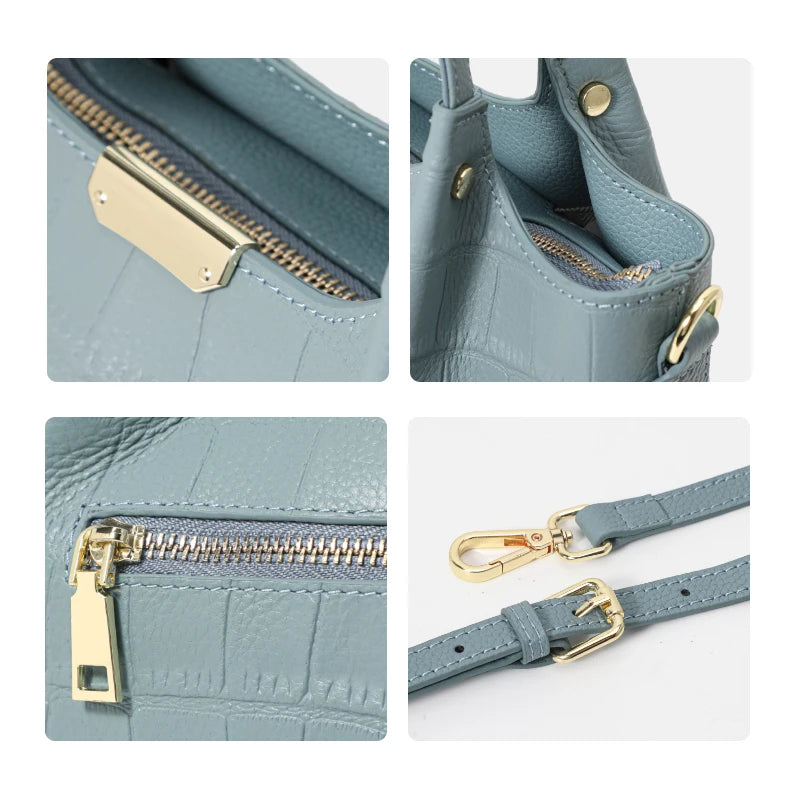 Die elegante Lederhandtasche mit Krokodilmuster ist für Frauen gedacht, die Stil, Funktionalität und Luxus schätzen. Diese atemberaubende Handtasche aus echtem Rindsleder verfügt über ein raffiniertes Krokodilmuster, das überall ein Statement setzt. Ihre Korbform ist nicht nur modisch, sondern bietet auch reichlich Stauraum, sodass sie sich sowohl für den täglichen Gebrauch als auch für besondere Anlässe perfekt eignet. Egal, ob Sie zur Arbeit, zu einer gesellschaftlichen Veranstaltung oder zu einem lässigen Tagesausflug gehen, diese Handtasche ist das perfekte Accessoire, um Ihren Look aufzuwerten.
