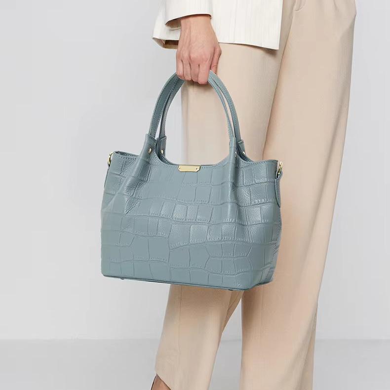 Elegante Handtasche aus Leder mit Krokodilmuster für Damen – Korbtasche mit großem Fassungsvermögen
