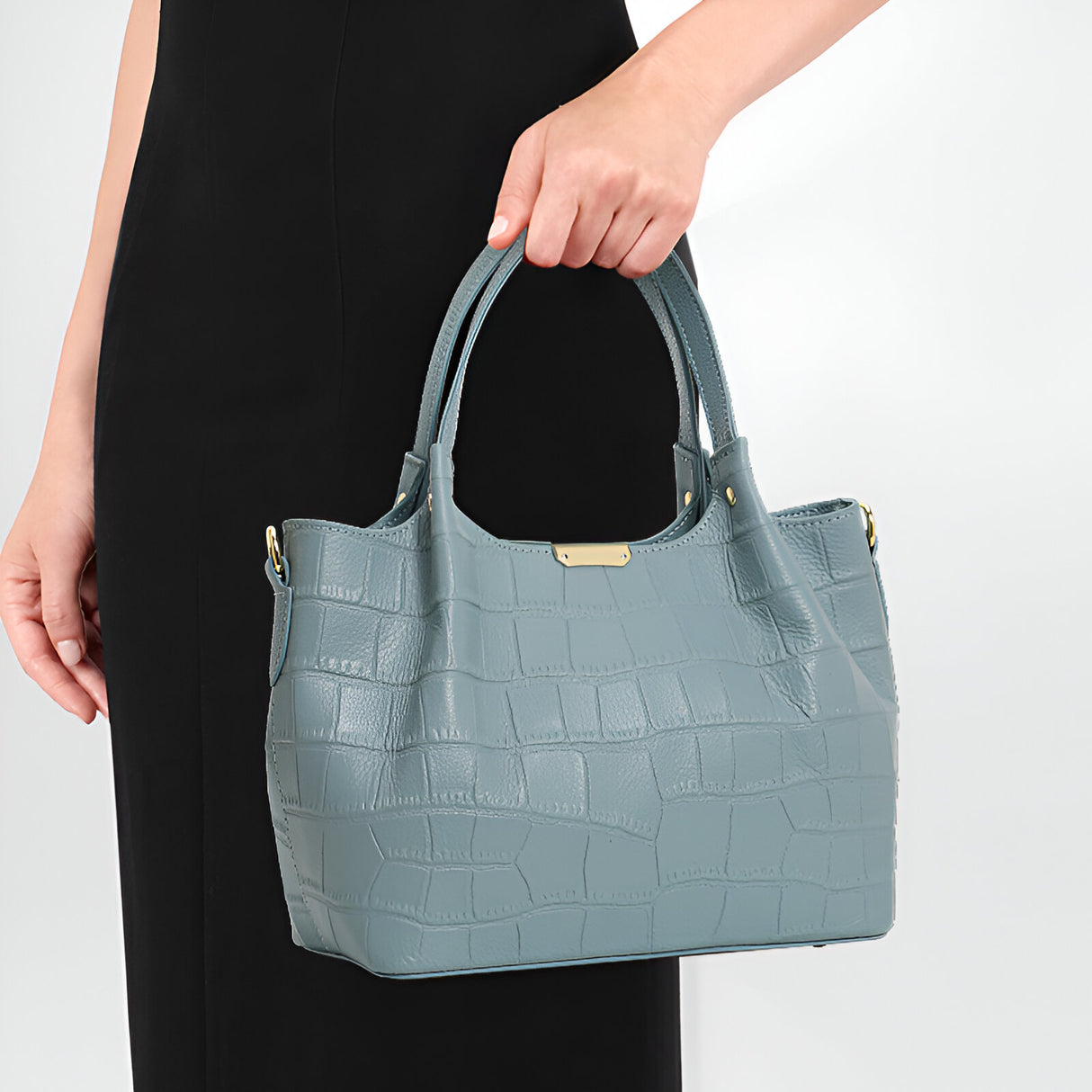 Die elegante Lederhandtasche mit Krokodilmuster ist vielseitig genug, um jedes Outfit zu ergänzen. Ihr elegantes Animalprint-Design und ihre harte Struktur verleihen ihr einen modernen Touch, während ihr geräumiges Inneres sie praktisch macht, um alles mitzunehmen, was Sie brauchen. Egal, ob Sie sie für die Arbeit, zum Einkaufen oder auf Reisen verwenden, diese Handtasche bietet sowohl Stil als auch Komfort. Sie ist die perfekte Balance zwischen Mode und Funktionalität und sorgt dafür, dass Sie überall auffallen.