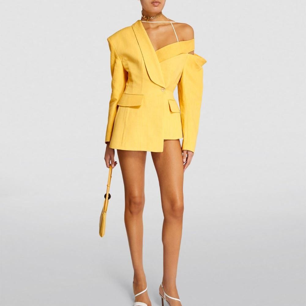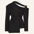 Wir präsentieren unseren modischen Damenblazer – ein Statement-Stück, das mühelos Eleganz und Trendbewusstsein vereint. Das schräge Schulterdesign, die langen Ärmel und die ausgehöhlten Details machen diesen Blazer zu einem Must-have für die modebewusste Frau von heute.