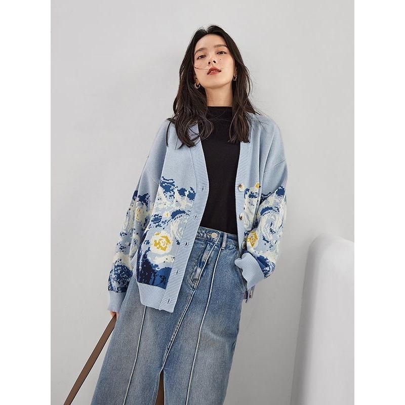 Begrüßen Sie die Kälte der Jahreszeit mit unserem atemberaubenden Winter-Strickcardigan. Dieser Cardigan wurde für Frauen entworfen, die sowohl Stil als auch Komfort schätzen, und ist eine perfekte Mischung aus Mode und Funktionalität. Sein dicker, gemütlicher Stoff sorgt dafür, dass Sie warm bleiben, während das schicke V-Ausschnitt-Design und die trendigen Drucke Ihrer Wintergarderobe einen Hauch von Eleganz verleihen. Dieser Cardigan ist perfekt für lässige Ausflüge oder gemütliche Abende und Ihr unverzichtbarer Winterbegleiter.