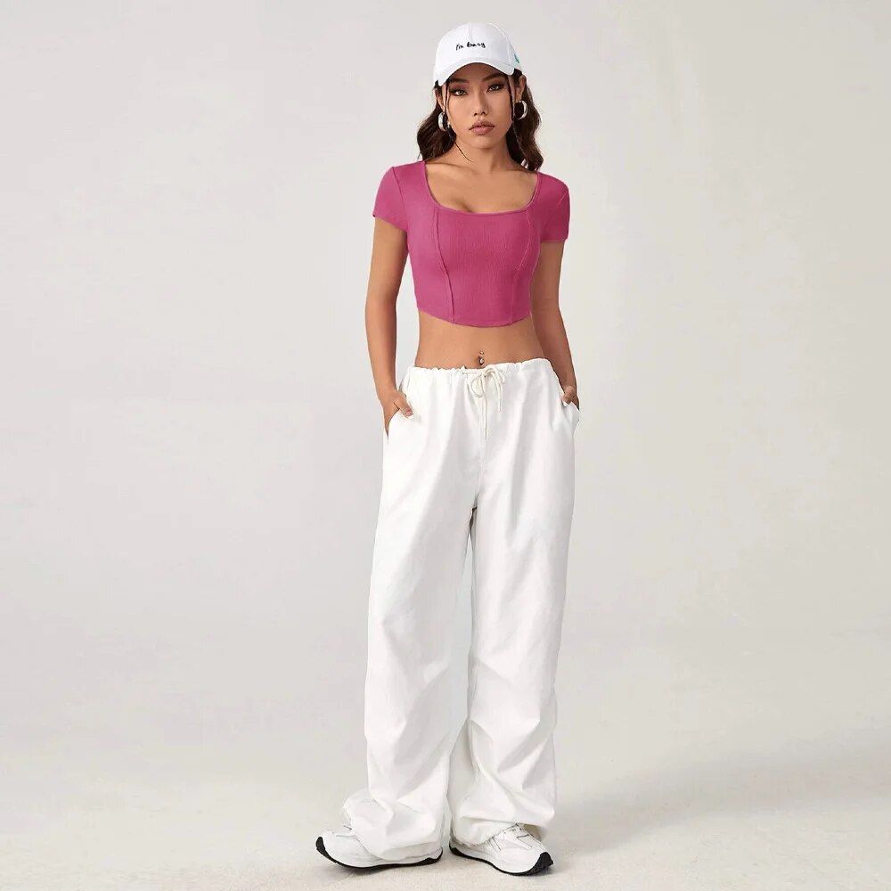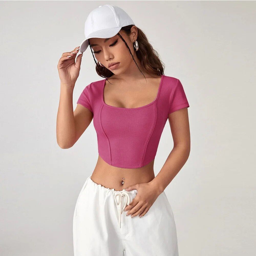 Bei unserem eleganten Sommer-Crop-Top geht es nicht nur um Stil, sondern auch um eine tolle Passform und dauerhaften Komfort. Das Oberteil hat eine gerippte Strickstruktur, einen quadratischen Kragen und kurze Ärmel. Es ist ein Oberteil im lässigen Stil mit einfarbigem Muster und leichtem Stretch für zusätzlichen Komfort. Denken Sie daran, dass dieses Oberteil größengerecht ausfällt. Wählen Sie also Ihre normale Größe für die perfekte Passform.