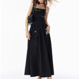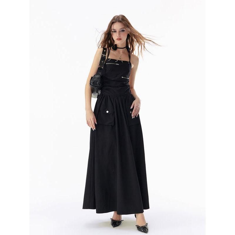Elegantes, rückenfreies, schlichtes, schwarzes Bandage-Maxikleid mit Taschen