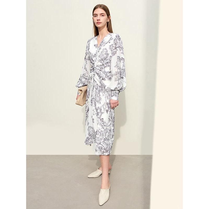 Chiffon-Feenkleid mit V-Ausschnitt und chinesischem Aufdruck