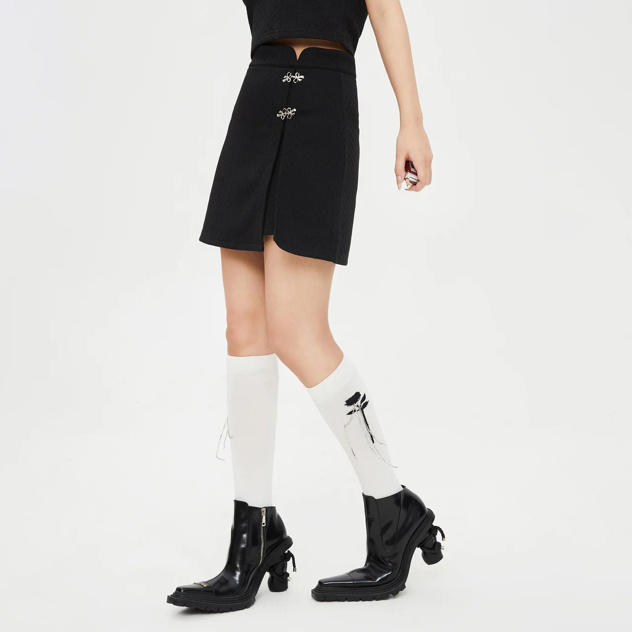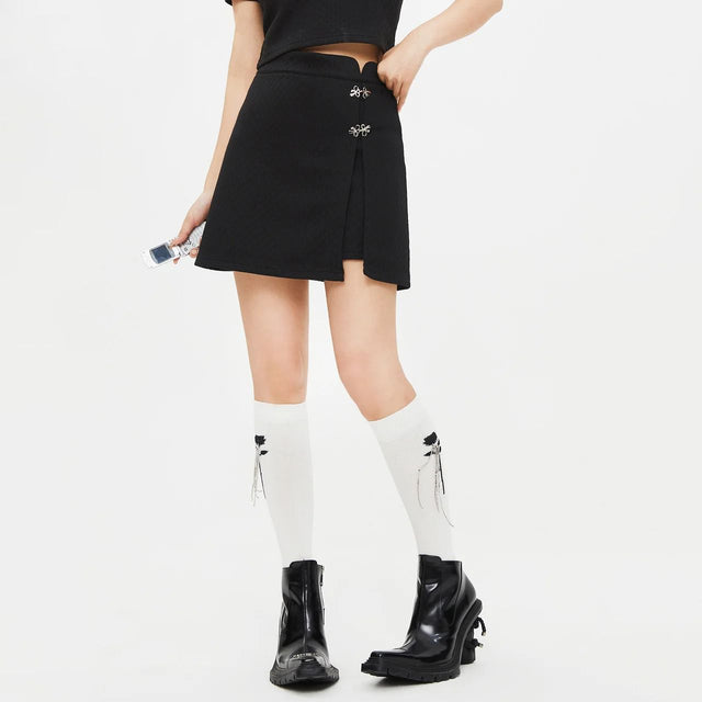 Kurzer A-Linien-Rock mit Knöpfen im chinesischen Stil