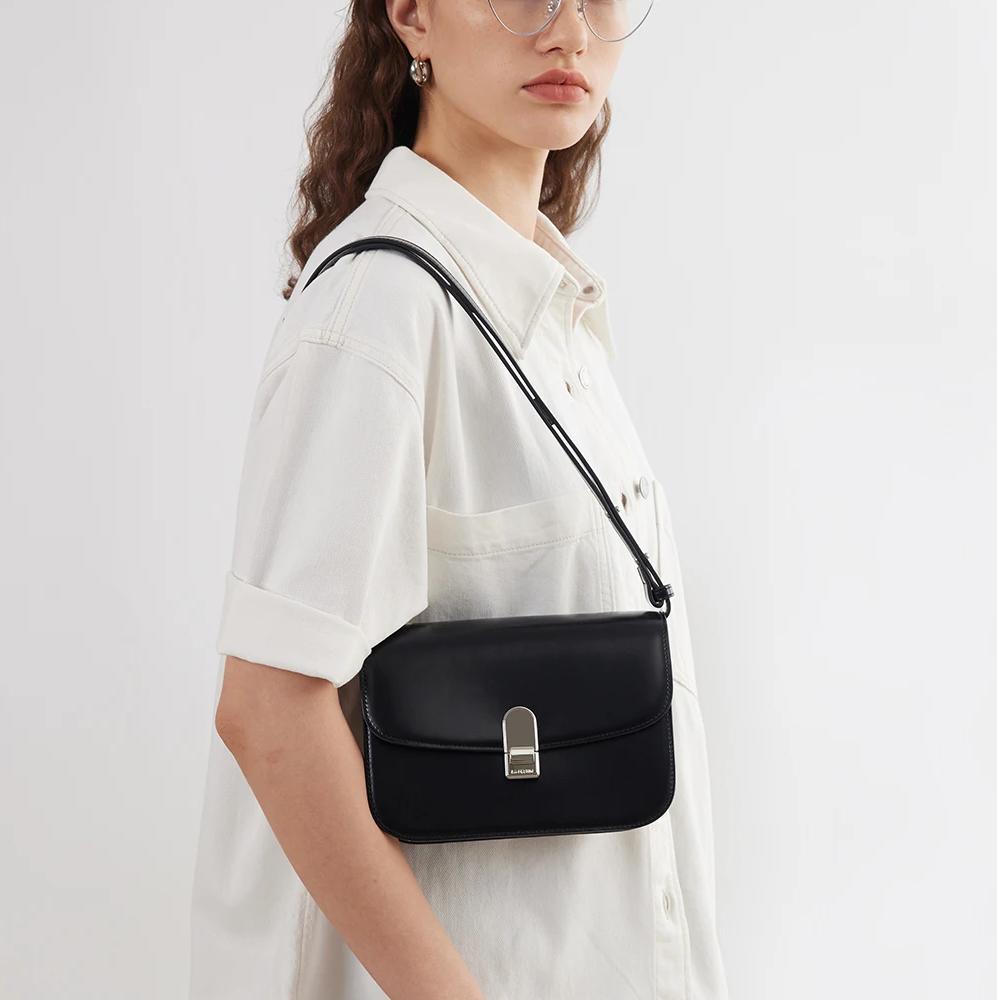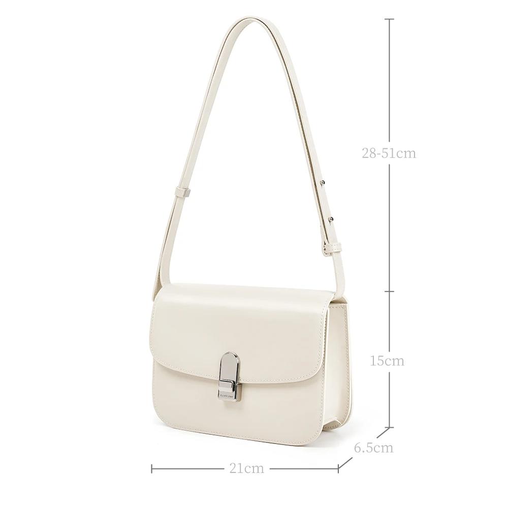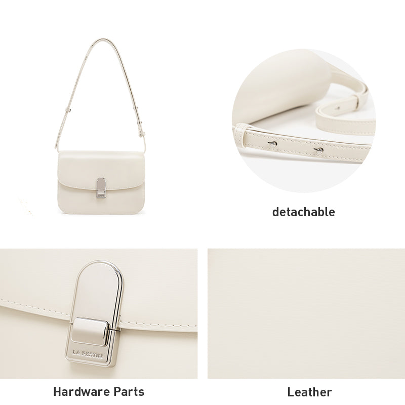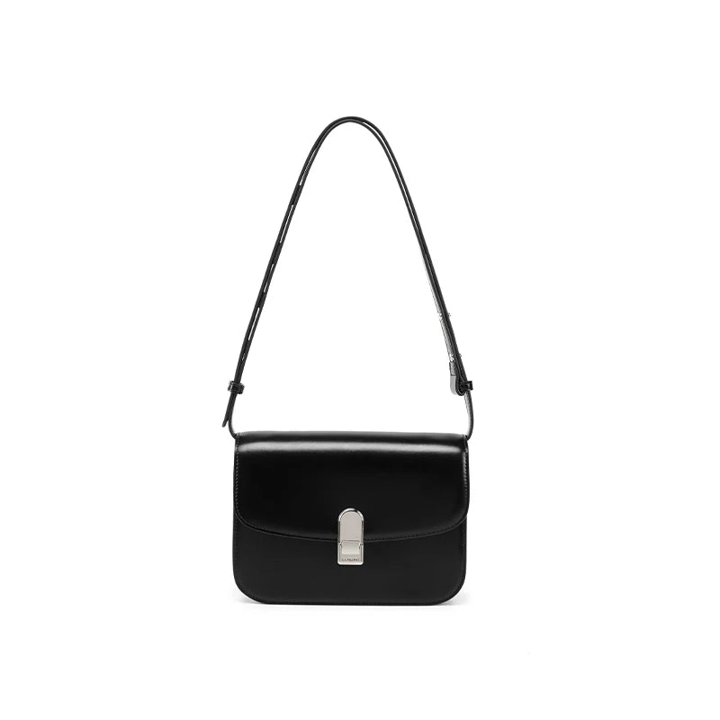 Diese Handtasche wurde so gestaltet, dass sie all Ihre täglichen Bedürfnisse erfüllt und gleichzeitig mühelos schick aussieht. Mit ihrer soliden, quadratischen Form bietet sie ein geräumiges und dennoch kompaktes Design, ideal zum Mitnehmen Ihrer wichtigsten Dinge, ohne dass sie sich sperrig anfühlt. Im Inneren befinden sich eine Reißverschlusstasche und ein Fach, sodass Sie unterwegs viel Platz haben, um Ordnung zu halten. Der vielseitige Haspenverschluss sorgt dafür, dass Ihre Sachen sicher sind, während der einzelne, verstellbare Riemen ein einfaches Tragen als Schulter- oder Umhängetasche ermöglicht.
