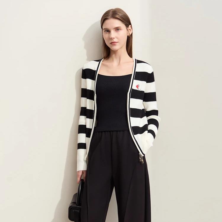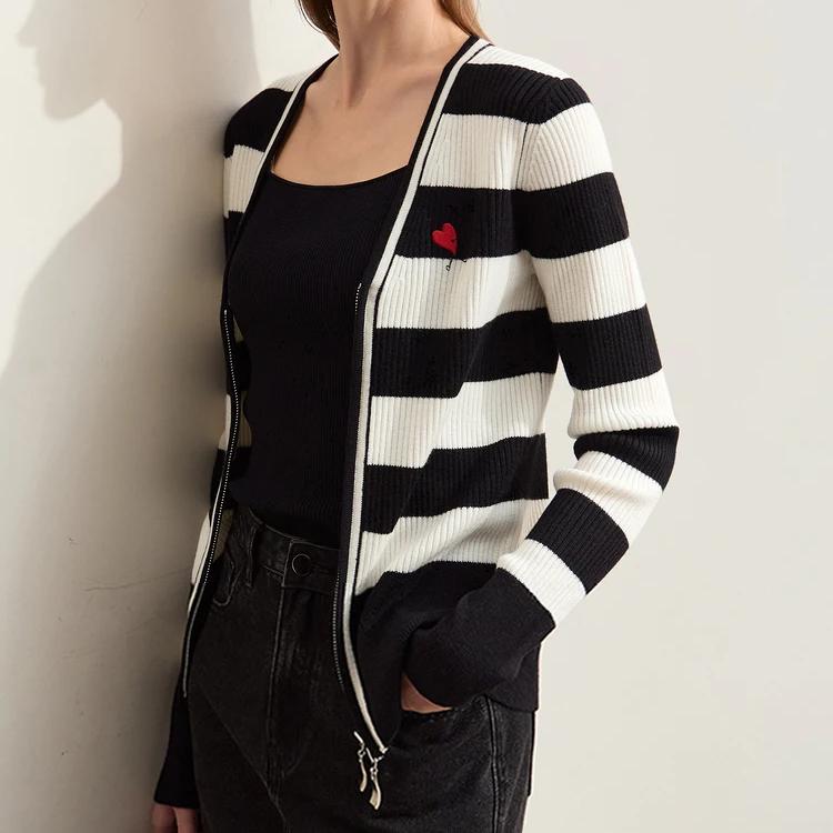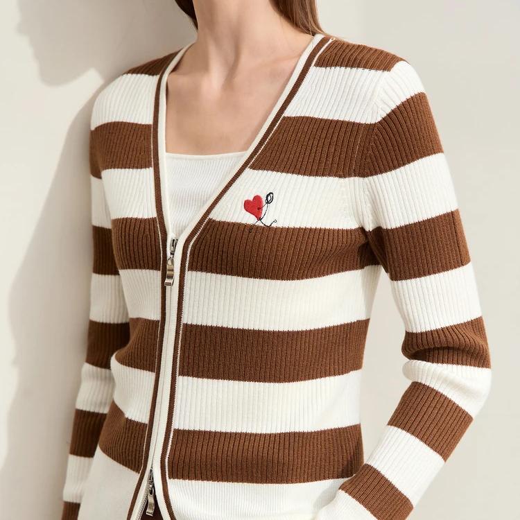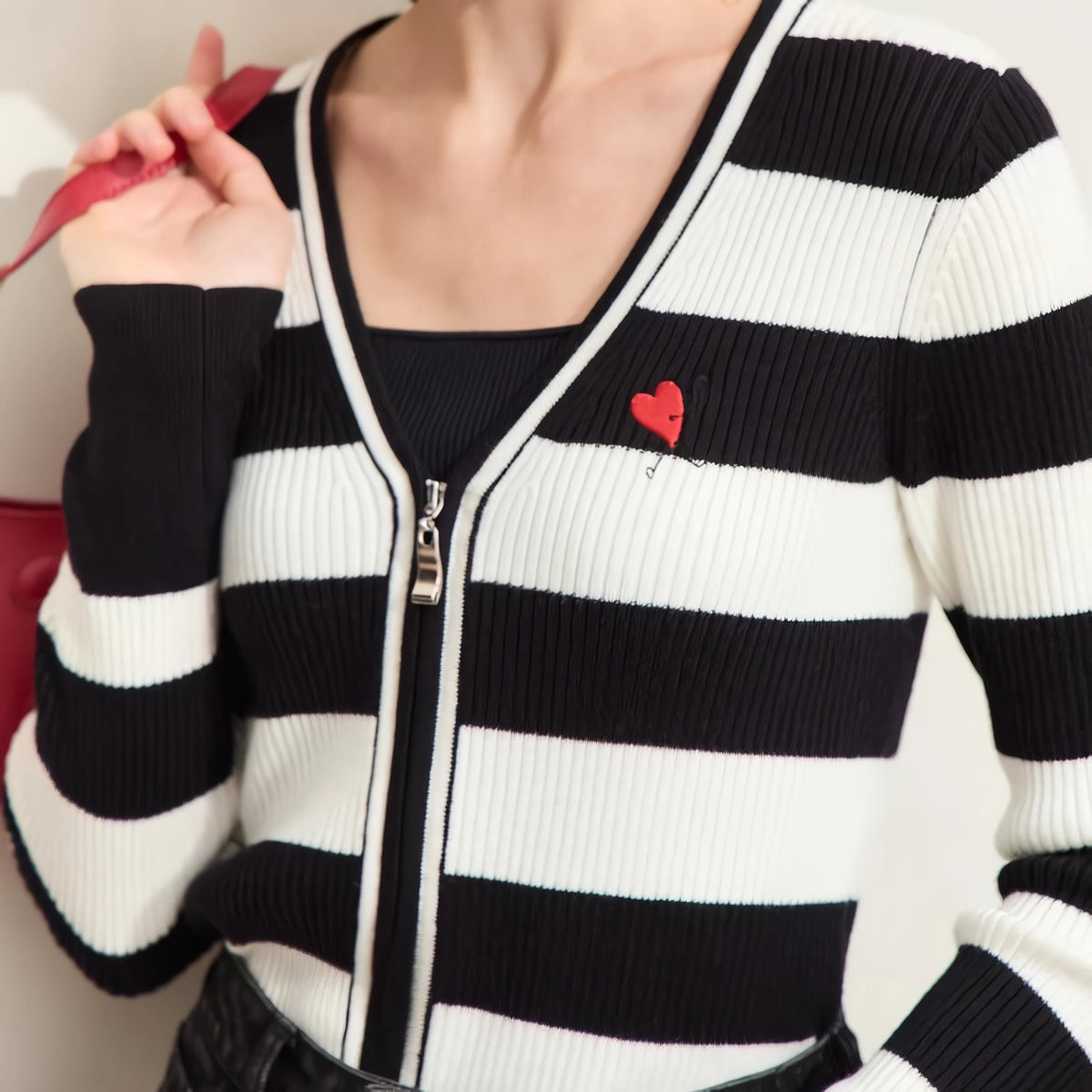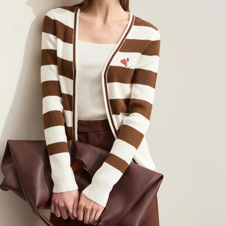 Beginnen Sie die Saison mit der perfekten Mischung aus Stil und Komfort mit unserem trendigen bestickten V-Ausschnitt-Cardigan mit Reißverschluss für den Herbst. Dieser exquisite Cardigan ist für die moderne Frau entworfen, die Eleganz und Funktionalität schätzt. Er besteht aus einer luxuriösen Mischung aus Wolle, Polyester, Acryl, Kaschmir und Polyamid und bietet eine leichte Dehnung für eine schmale Passform, sodass Sie toll aussehen und sich dabei unglaublich wohl fühlen. Dieser Cardigan mit seinem einzigartigen Streifenmuster und den detaillierten Stickereien verleiht jedem Outfit einen Hauch von Eleganz. Die langen Ärmel und die normale Kleiderlänge machen ihn zu einem vielseitigen Kleidungsstück für Ihre Herbst- und Wintergarderobe. Egal, ob Sie ins Büro gehen oder einen legeren Abend verbringen, dieser Cardigan ist Ihre erste Wahl für mühelosen Stil.