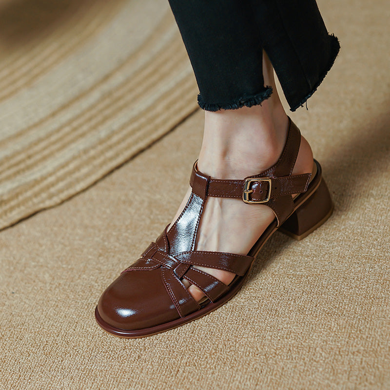 Verleihen Sie Ihrer Sommergarderobe mit unseren schicken runden High Heel-Ledersandalen einen Hauch von Retro-Eleganz. Diese Sandalen aus hochwertigem Rindsleder mit schlichtem Schnallenriemendesign werden garantiert zu Ihrem Lieblingsschuh für jeden Anlass. Kaufen Sie jetzt ein und zeigen Sie Stil!