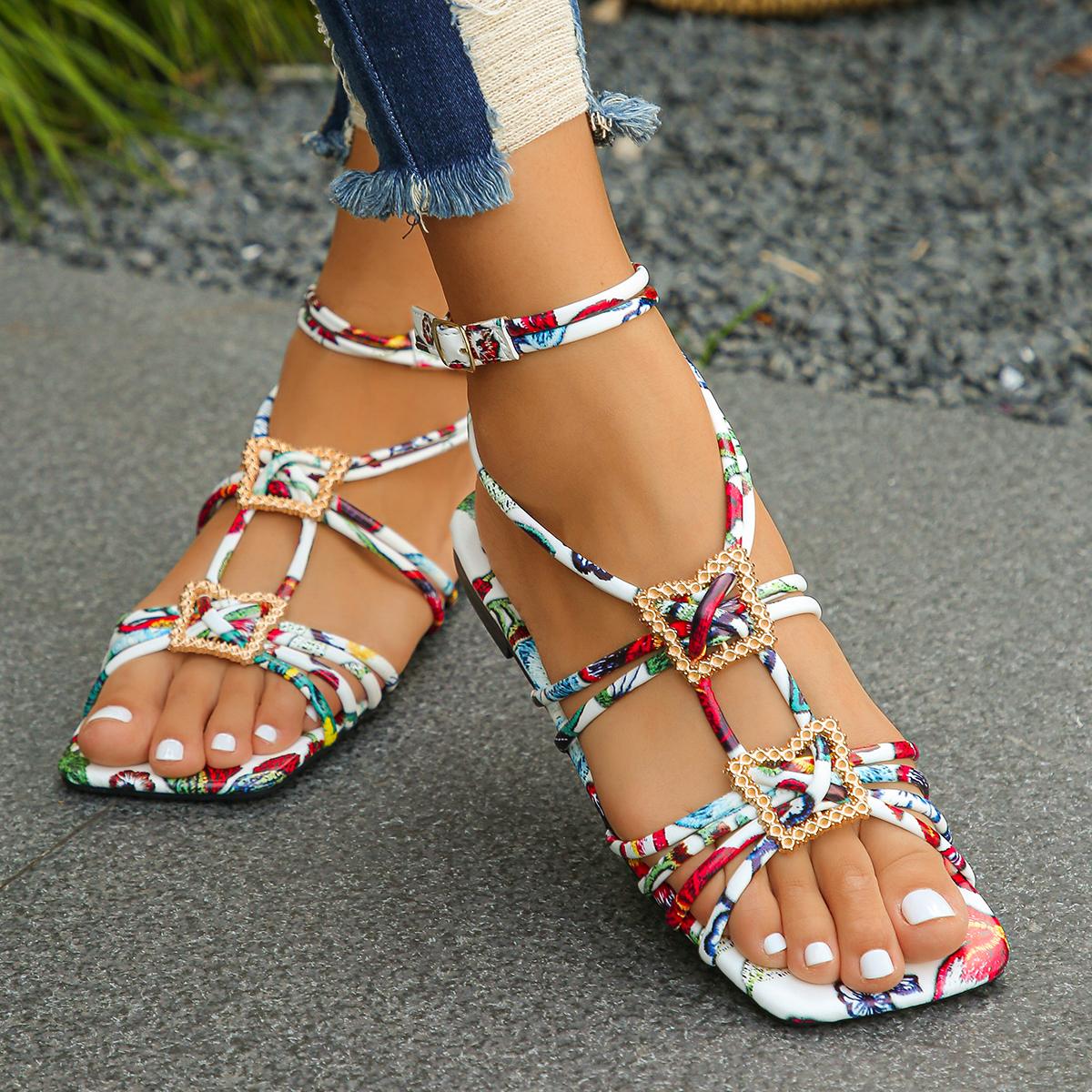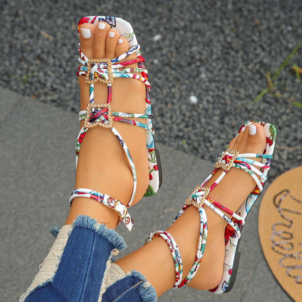 Werten Sie Ihre Sommergarderobe mit unseren flachen Sommersandalen mit Knöchelriemen für Damen auf. Diese Sandalen mit schicker quadratischer Spitze und überkreuzter Schnürung im Gladiator-Stil sind perfekt für jeden legeren Anlass. Egal, ob Sie an den Strand gehen, einkaufen oder einen Tag mit Freunden verbringen, diese Sandalen vereinen Mode und Funktionalität, damit Sie den ganzen Tag bequem und stilvoll unterwegs sind.