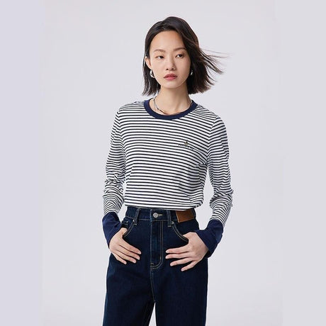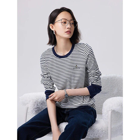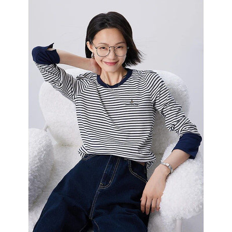 Normaler Preis $ 1,199.00 MXNGrundpreis /Nicht verfügbarGestreiftes Langarm-T-Shirt für Damen...