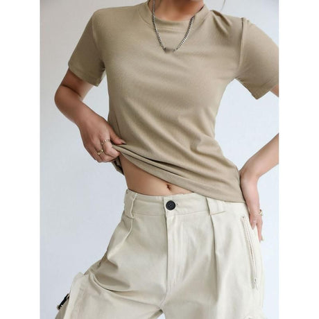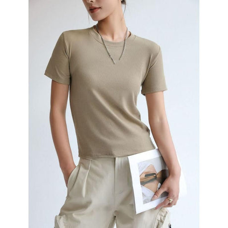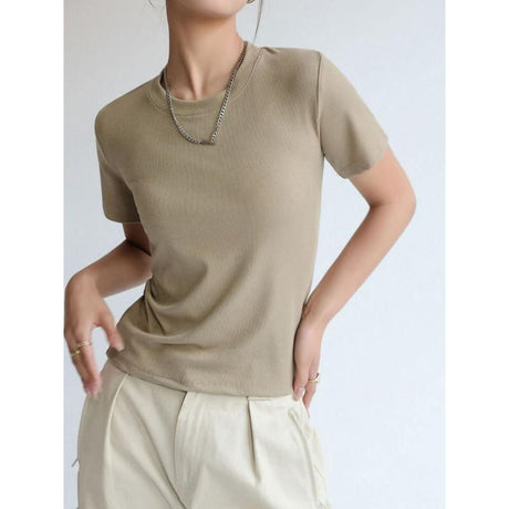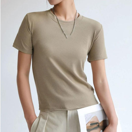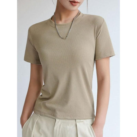 Normaler Preis $ 1,424.00 MXNGrundpreis /Nicht verfügbarGeripptes Rundhals-T-Shirt für Damen