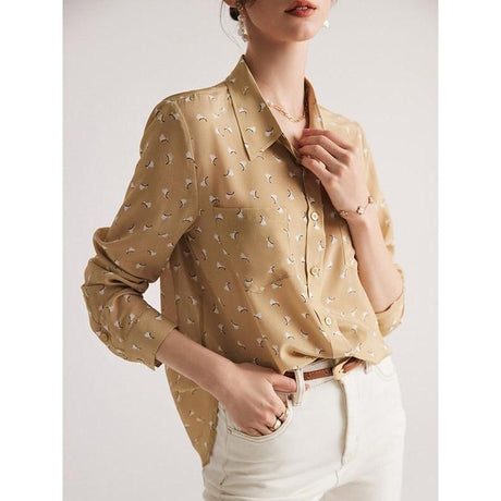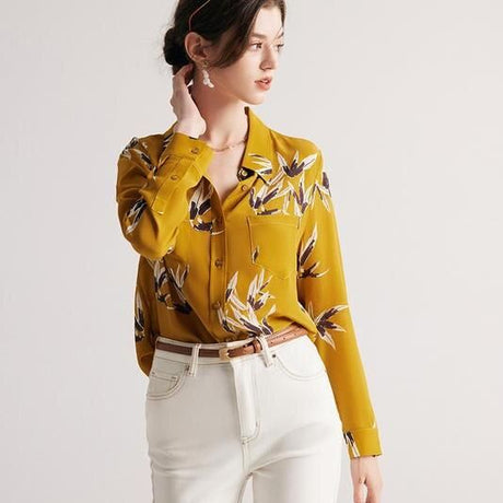 Normaler Preis $ 3,635.00 MXNGrundpreis /Nicht verfügbarElegante bedruckte Seidenbluse