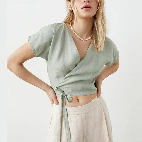 Normaler Preis $ 1,068.00 MXNGrundpreis /Nicht verfügbarSommerliches Baumwoll-Leinen-T-Shirt ...