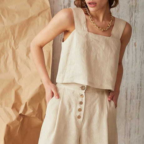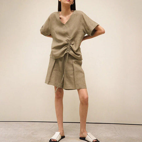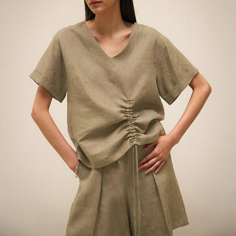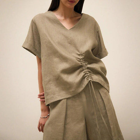 Schickes Leinen-T-Shirt mit V-Ausschnitt