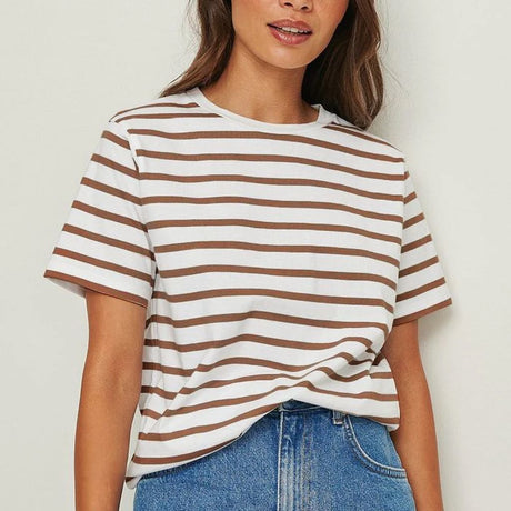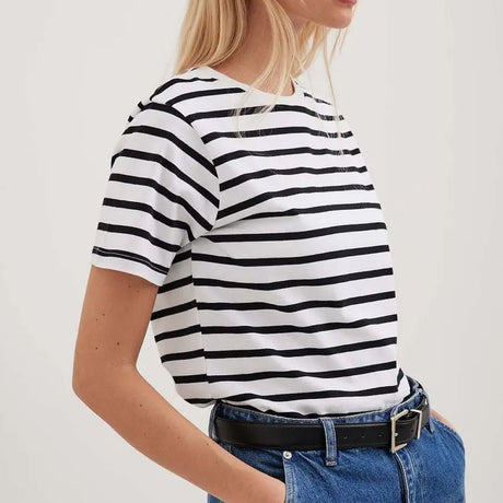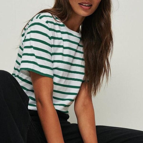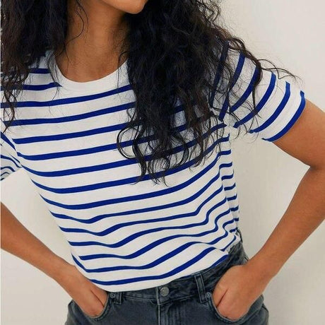 Normaler Preis $ 1,068.00 MXNGrundpreis /Nicht verfügbarKurzärmliges gestreiftes Sommer-T-Shirt