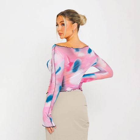 Normaler Preis $ 806.00 MXNGrundpreis /Nicht verfügbarBuntes Langarm-T-Shirt mit Rüschen au...